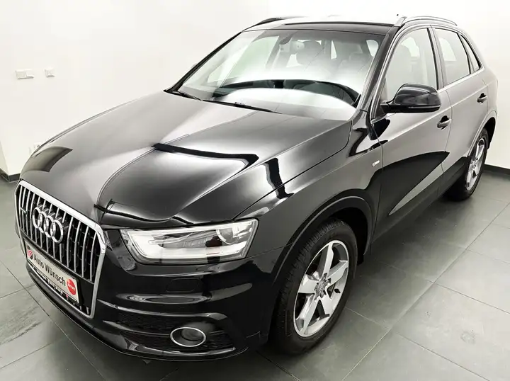 Dieser gepflegte Audi Q3 aus dem Jahr 2013 überzeugt durch seine umfangreiche Ausstattung und Zuverlässigkeit. Der Allradantrieb in Kombination mit dem 177 PS starken Dieselmotor bietet hervorragende Fahreigenschaften bei gleichzeitig wirtschaftlichem Verbrauch. Die schwarze Metallic-Lackierung harmoniert perfekt mit dem grauen Alcantara-Leder-Interieur. Das Fahrzeug verfügt über eine 2-Zonen-Klimaautomatik und beheizbare Sitzen vorn. Das S-Line-Sportpaket inklusive Sportsitzen verleiht dem Fahrzeug einen dynamischen Charakter. Die umfangreichen Sicherheitssysteme wie Kollisionsvermeidung, ABS/ESP und Berganfahrhilfe sorgen für ein sicheres Fahrgefühl. Der Wagen verfügt über ein lückenloses Scheckheft und wurde stets von Nichtrauchern gefahren.