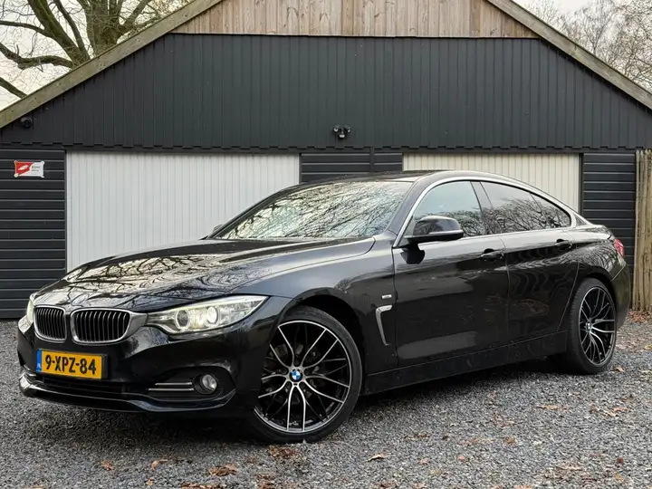 Keurige BMW 420i Luxury Line uit 2014 in het Black Sapphire Metallic.