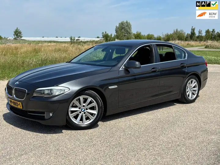 Laat u niets wijsmaken, deze BMW 5-serie biedt alles wat u van een auto verlangt. Met een krachtige zescilinder motor( 204 Pk ) en een automatische 8 traps transmissie beschikt deze BMW over uitstekende prestaties. De elektrisch bedienbare achterklep opent met een druk op de knop. Tot de uitrusting van deze BMW behoren ook een electrisch bedienbaar schuif- en kanteldak en 17 inch lichtmetalen BMW sportvelgen met 4 Good Year banden.