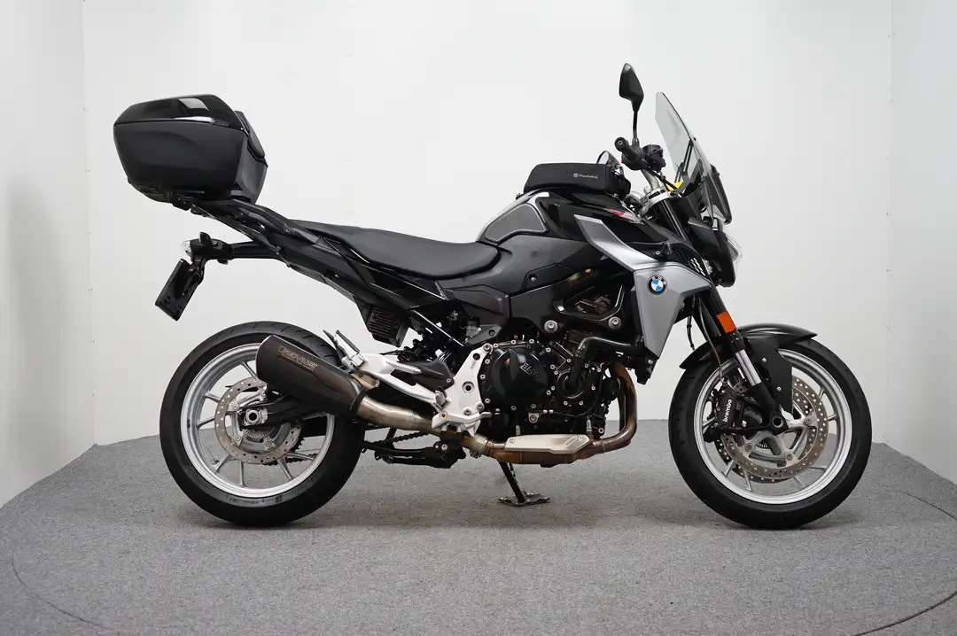 Een in zeer nette staat verkerende BMW F 900 R ABS met cruise control, Traction control, Topkoffer, Whunderlich tanktas, Puig windscherm, Remus uitlaatsysteem, Led verlichting en Quickshifter.