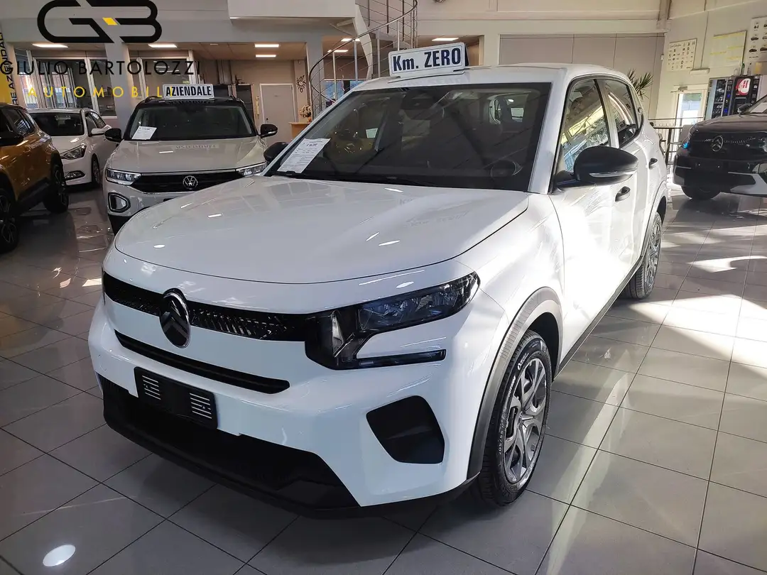 1 presa USB-C sul cruscotto (ricarica rapida 3A) - 2 altoparlanti - ABS + REF + AFU + ESP - Accensione automatica dei fari anabbaglianti - Airbag a tendina - Airbag anteriori - Airbag laterali - Alzacristalli anteriori elettrici (abbassamento sequenziale) - Autoradio con 2 altoparlanti - Calotte degli specchietti retrovisori esterni in tinta in massa - Cambio manuale a 6 marce - Cerchi con copertura integrale Pyrite da 16 - Chiusura centralizzata con pulsante di sicurezza e visualizzazione permanente delle porte chiuse - Citroën Connect Box (comprende i servizi Connect ONE) - Climatizzatore manuale - Head-up Display - Hill Assist - Interni in Tessuto Nero/Armonia Grey - Kit di riparazione temporanea dei pneumatici - Maniglie esterne delle porte nere lucide - Maniglie esterne delle porte nero opaco - Maniglie interne delle porte nero opaco - My Citroen Play con smartphone station - Pack safety - Proiettori anteriori a LED - Proiettori anteriori alogeni con firma luminosa a LED - Radiocomando al volante - Rilevamento di gonfiaggio insufficiente - Rivestimento passaruota Matt Black - Sedili posteriori monoblocco abbattibil, non indipendenti - Sensori di parcheggio posteriori - Servosterzo - Sospensioni Citroen Advanced Comfort - Specchietti esterni elettrici - Spia cintura di sicurezza conducente e passeggeri - Spoiler posteriore - Tetto in tinta carrozzeria - Volante regolabile in altezza e profondità