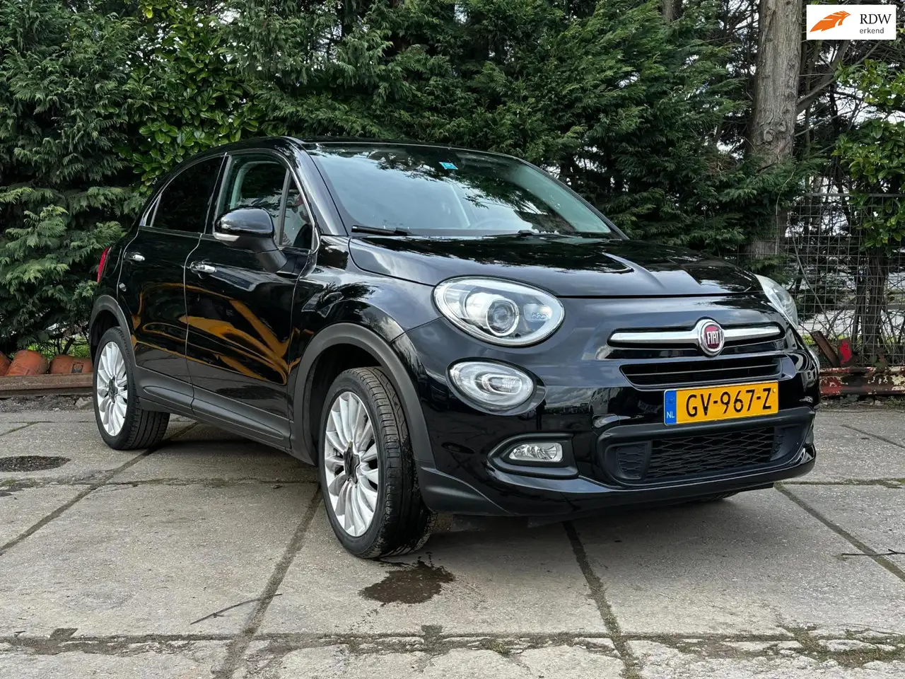 Fiat 500 X 1.4 Turbo automaat Multiair Lounge uitvoering. Een rijk uitgeruste Fiat 500 X automaat met een mooie kleurcombinatie Zwart exterieur en cognac bruin half leder half stof bekleding heeft de ultieme luxe en stoere uitstraling.