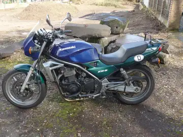 Tiefergelegte und Unfallfreie Twister. Die ER-5 wurde extra, von Motorrad Hauenstein, für meine Größe von nur 155 cm, auf 71 cm Sitzhöhe umgebaut.
