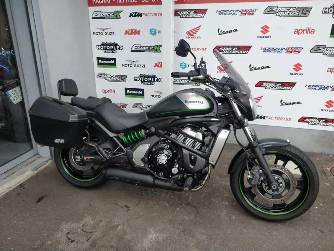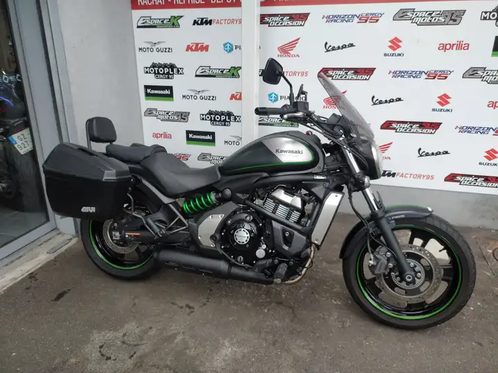 Kawasaki Vulcan 650 s, 04/2017, gris anthracite mat/gris clair/vert. Bridable en 47.5 cv pour les permis A2. Equipe d'un pare brise, de valises, d'un sissy bar avec porte bagages et d'une prise USB. Premire main. Double des cls et factures d'entretien disponible. Une rvision ainsi que le passage au contrle technique sont prvus pour la vente. Garantie 3 mois, extension possible. Reprise et assurance possible, essai sur rdv. Visible au magasin horizon moto, 11 rue d'pluches, 95310 saint ouen l'aumne, demander Philippe au 01.30.30.38.24. Comparable cmx 500, eliminator 500, street 750, super meteor, 502c, 752s