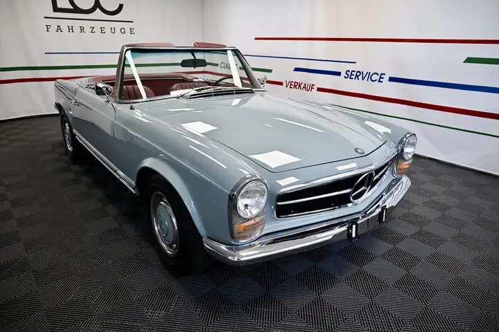 Zum Verkauf steht ein wunderschöner Mercedes-Benz 250 SL âPagodeâ, der im Auftrag des Vorbesitzers aufwendig und mit viel Liebe zum Detail restauriert wurde. Die Arbeiten erfolgten nach den individuellen Vorstellungen des Besitzers, wobei besonderer Wert auf Originalität und authentische Anmutung gelegt wurde.Leider fehlt dem Eigentümer inzwischen die Zeit, dieses außergewöhnliche Fahrzeug gebührend zu nutzen, weshalb er sich nun schweren Herzens zum Verkauf entschieden hat