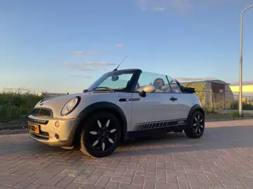 unieke Mini cooper cabriolet . bouwjaar 2008 weinig km 163000( wel oplopend ) in de mooiste kleur combinatie metalic wit en een mokka bruin interieur.