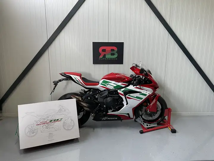 This beautiful machine is a limited edition, with only 200 units produced worldwide. This specific motorcycle has the number #007, making it a truly unique collector's item. The motorcycle is equipped with the standard exhaust and also comes with the improved Akrapovic exhaust system, see contents of the beautiful racing kit. This is your chance to own one of the most coveted and visually striking sports bikes on the market today. The 2024 MV Agusta F3 Reparto Corse combines exceptional Italian craftsmanship with advanced technology and race-ready performance.