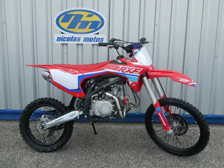 La nouvelle gamme RXF fait rentrer la marque Apollo Motors dans une nouvelle re! Nouveau look, nouveau ts de fourche, nouvel chappement,nouveau moteur! Accrochez-vous votre guidon ces motos sont incomparable les autres marques du march du Dirt Bike. 5 ans de dveloppemen au sein du sige Apollo Motors ont t ncessaires pour faire natre et dvelopper le nouveau concept RXF. Un chssis unique test en comptition accueillant un pied de cadre moul, des Suspensions dignes dune MX Japonaise, des plastiques au look agressif indpendants de la selle : vous navez plus besoin denlever la selle pour enlever vos plastiques, la selle est dmontable par le dessous. Cette RXF freeride est la toute dernire ne de la gamme de la marque Apollo, ce modle est une version enduro de la gamme. La freeride est quipe d'un dmarreur lectrique, vous pourrez donc la dmarrer trs facilement. Cette version 'Freeride Enduro' est quipe de grandes roues 16'' l'arrire et 19'' l'avant, grce celles-ci la moto sera plus haute et vous apportera plus de confort. Le kit plastique des modles RXF Freeride a t dvelopp en France dans les bureaux d'Apollo Motors en troite collaboration avec leurs pilotes usines: ligne de poutre ultra fine, libert de mouvement maximale, sans aucun compromis pour le placement des composants tout lui va comme un gant. L'intelligence de conception du nouveau kit plastique se ressent ds que l'on s'assoit sur la moto. Aprs les premiers tours, on ralise la relle ampleur que gnrent toutes ces diffrences. Cette RXF change de dimension et d'esthtique afin de proposer des motos proches de celles des championnats de moto cross. Vous en avez marre des motos jetables et peu fiables ? Vous voulez acheter une moto conue en France? Cette nouvelle RXF rpondra vos exigences. 'Fini les Pit Bikes et autres Dirt Bikes chinoises : vive la Minicross !'