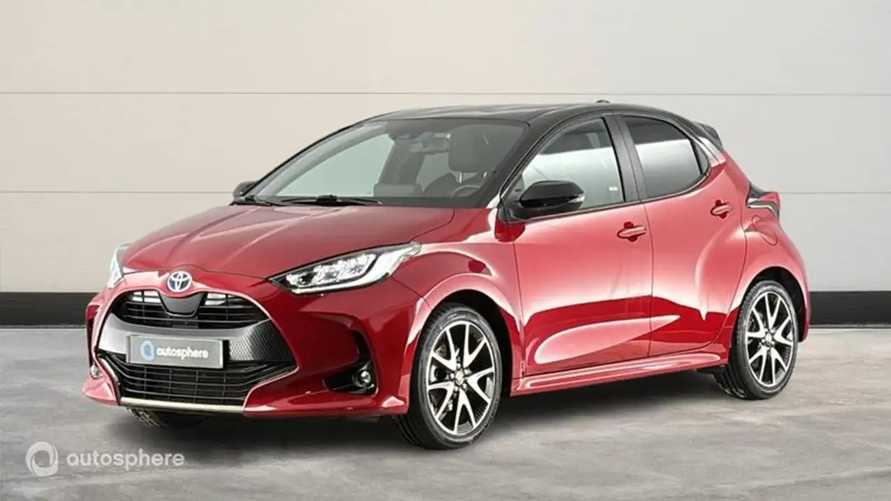 Marque: Toyota Modèle: Yaris Version: 116h Collection 5p MY22 Energie: Hybride Année: 2022 Couleur: Bi-ton Rouge Intense / Toit noir Carrosserie: Berline Boite: Automatique Portes: 5 Places: 5 Cylindrée: 1490 Garantie: Label Toyota Occasions 36 mois TFR Equipements: 6 Haut parleurs, ABS, Accoudoir central AV, Affichage tête haute, AFIL, Aide au démarrage en côte, Aide au freinage d'urgence, Airbag conducteur, Airbag passager déconnectable, Airbags latéraux avant, Airbags rideaux AV et AR, Allumage des phares automatique, Antidémarrage électronique, Antipatinage, Appel d'Assistance Localisé, Appel d'Urgence Localisé, Assistance de maintien de trajectoire, Caméra de recul, Capteur de pluie, Clim automatique, Clim automatique bi-zones, Commandes du système audio au volant, Compte tours, Démarrage sans clé, Détecteur de sous-gonflage, Eclairage d'ambiance, Ecran multifonction couleur, Ecran tactile, ESP, Feux arrière à LED, Feux de jour à LED, Feux de route automatiques, Filtre à Pollen, Fixations Isofix aux places arrières, Freinage automatique d'urgence, Interface Media, Jantes Alu, Kit mains-libres Bluetooth, Lampe de coffre, Limiteur de vitesse, Lunette arrière surteintée, Mi-cuir Type Sport, Ordinateur de bord, Phares antibrouillard, Phares avant LED, Prise USB, Radio numérique DAB, Reconnaissance panneaux de signalisation, Régulateur de vitesse adaptatif, Répartiteur électronique de freinage, Rétroviseur intérieur électrochrome, Rétroviseurs dégivrants, Rétroviseurs électriques, Rétroviseurs rabattables électriquement, Services connectés, Siège conducteur chauffant, Siège conducteur réglable en hauteur, Siège passager chauffant, Système avancé de détection d'obstacles, Système d'accès sans clé, Système d'alerte de véhicule en approche, Système d'éclairage intelligent, Système de prévention des collisions, Tablette cache bagages, Troisième ceinture de sécurité, Verrouillage centralisé à distance, Verrouillage centralisé des portes, Vitres arrière électriques, Vitres arrière surteintées, Vitres avant électriques, Vitres teintées, Volant cuir, Volant multifonction, Volant réglable en profondeur et hauteur, Bi-ton Rouge Intense / Toit noir