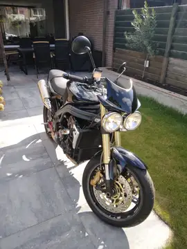 Te koop: Nette Triumph Speed Triple uit 2006, de tijd dat mannen nog mannen waren, niet te veel opties dus maar gewoon puur motorrijden. Motor 29845 kilometer op de tellen, altijd keurig onderhouden, in mei nog een beurt, nieuwe ketting en nieuwe banden gehad. Bezit een Quickshifter en stuurverwarming. Knipperlichtkapje linksvoor ontbreekt. Ook krijgt u voetsteuntjes voor een passagier en reiskoffers mee. Tevens is er een andere uitlaat en spiegels mee te verkrijgen.