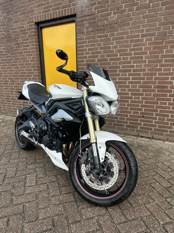Te koop wegens het behalen van volledig rijbewijs. Triumph street triple 675 uit februari 2016. met 39xxx op de teller. De motor staat op A2 op kenteken maar rijdt op vol vermogen(106pk). De motor is in uitstekende technische staat. Motorolie en filter zijn netjes elke 5000km gedaan. Remvloeistof is begin van het seizoen vervangen toen de nieuwe uitlaat eronder is gezet. Ook zitten er nieuwe bougies in en een niewe K&N luchtfilter.