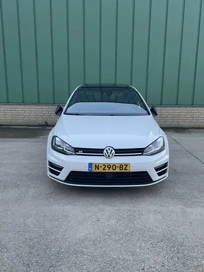 Deze Volkswagen Golf R betreft het faceliftmodel en is uitgevoerd in een stijlvolle parelmoer-witte lak.