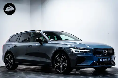 Een zeer fraaie Volvo V60 T8 Recharge AWD in de prachtige kleur thunder grey met o.a. het R-Design pakket, full led, 19 inch, lederen sportstoelen, elektrische stoelen met geheugen, Harman Kardon audio, navigatie en apple car play, zwart optiek, achteruitrijcamera en een elektrische klep.
