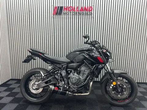 Zwarte Yamaha MT-07 uit 2022 met A2 35kw met 8080km op de teller.