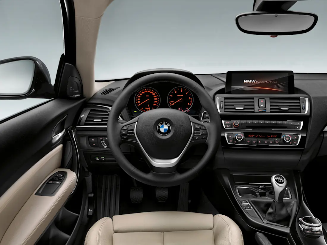 Binnenin zie je het typische BMW-dashboard van die tijd: functioneel, licht naar de bestuurder gericht en strak afgewerkt. De materialen voelen goed aan, zeker als je een versie met leren stuur of stoffen sportstoelen hebt. Het infotainmentscherm is bij de meeste modellen geïntegreerd in het dashboard, bedienbaar via de bekende iDrive-knop op de middenconsole. De basisuitvoering is wat kaal, maar met het juiste pakket voelt het interieur modern aan – zeker als je er eentje met licht interieur of aluminium afwerking treft.