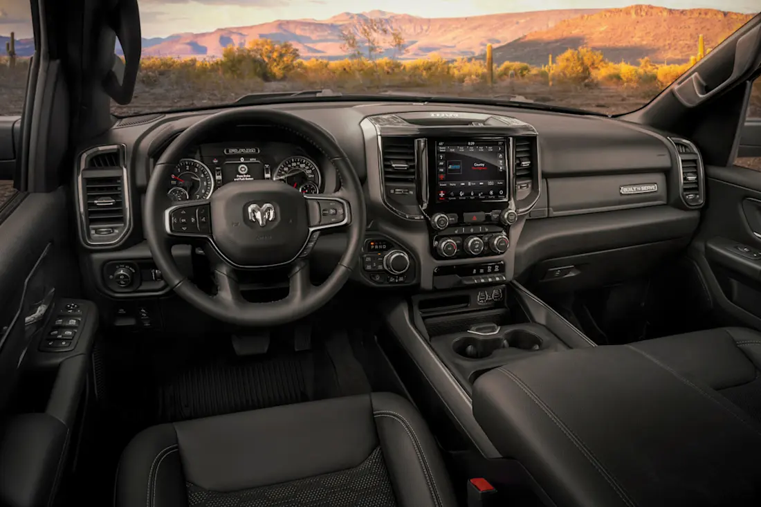 Het interieur van de Ram 1500 is verrassend verfijnd en overtreft menig Europese SUV. Weliswaar afhankelijk van de uitvoering krijg je hoogwaardige materialen, houtinleg, leren bekleding en zelfs alcantara in sportievere varianten. Centraal staat het grote Uconnect-infotainmentsysteem, met in sommige modellen een verticaal 12-inch touchscreen. Er zijn meerdere USB-aansluitingen, draadloze telefoonlader, en optioneel een negentien speakers tellende Harman Kardon-installatie. De voorstoelen zijn vaak elektrisch verstelbaar, verwarmd én geventileerd. Ook de achterpassagiers profiteren van veel beenruimte en comfort. Opbergmogelijkheden zijn er volop, zoals het RamBox-systeem in de laadbak en grote vakken in de middenconsole. Kortom: dit is niet alleen een werkpaard, maar ook een luxe cruiser.