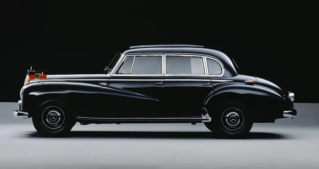 - De Mercedes-Benz 300 staat symbool voor de jaren van het economische wonder na de Tweede Wereldoorlog.