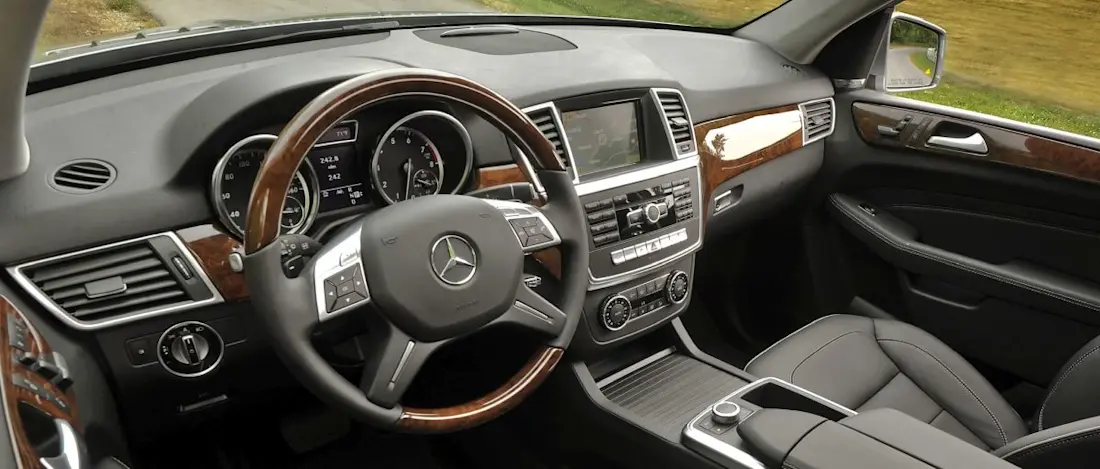 Binnenin straalt de M-Klasse rust en degelijkheid uit. Het dashboard is overzichtelijk en netjes afgewerkt. Je vindt er houtinleg, leren bekleding en aluminium accenten, afhankelijk van de uitvoering. De stoelen zitten goed, zelfs op lange ritten, en het infotainmentsysteem is degelijk, al is het inmiddels wat gedateerd. De bedieningslogica is typisch Mercedes: even wennen, maar daarna logisch. Fysieke knoppen zorgen ervoor dat je niet voor alles door menu’s hoeft te scrollen. De interieurruimte is prima. Achterin kunnen zelfs lange volwassenen goed zitten.