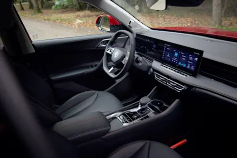 Het interieur van de MG HS PHEV is ruim en comfortabel, met hoogwaardige materialen en een overzichtelijk dashboard. Het infotainmentsysteem wordt bediend via een 12,3-inch touchscreen en het digitale instrumentenpaneel – ook 12,3 inch – heeft een moderne uitstraling. De prettige stoelen zijn ergonomisch vormgegeven en in de Luxury-uitvoering voorzien van lederlook bekleding. Verder is de MG HS PHEV uitgerust met sfeerverlichting, waardoor het interieur extra luxe aanvoelt.