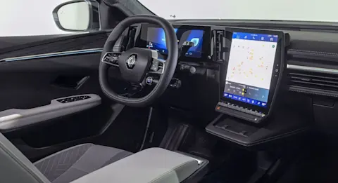 Binnenin is de Renault Scenic E-Tech Electric ontworpen met comfort en gebruiksgemak in gedachten. Het interieur biedt een moderne en overzichtelijke indeling met hoogwaardige materialen en veel aandacht voor ergonomie. Zowel voorin als achterin is er volop ruimte voor passagiers, met voldoende been- en hoofdruimte. Kenmerkend voor de Scenic zijn de vele opbergmodelijkheden in het interieur en het optionele elektrochromatisch panoramisch dak dat doormiddel van vloeibare kristallen veel of weinig licht kan doorlaten.