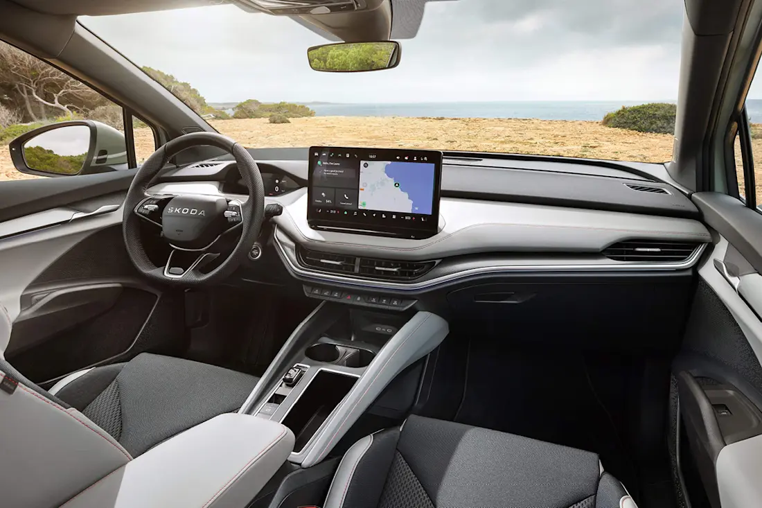 In het interieur ligt de focus op functionaliteit. De bestuurder kijkt uit op een 5,3-inch digitale scherm. Met het centraal geplaatste 13-inch infotainmentscherm bedien je verreweg de meeste functies. Skoda blijft trouw aan zijn Simply Clever-oplossingen, met slimme opbergvakken en een praktische middenconsole.