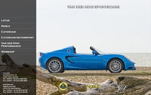 Van der Kooi Sportscars het importeurschap voor Lotus, Noble en Caterham in Nederland. Om die reden willen wij u graag iets over ons vertellen. Allereerst kunt u bij ons natuurlijk terecht voor de aanschaf van een nieuwe Lotus, Noble en Caterham. In onze showroom kunt u de volgende modellen bewonderen: - Lotus Elise mk II - Lotus Esprit, als diverse gebruikte modellen. - Lotus Exige mk II - Noble M12 GTO 3R - Caterham CSR200 Wilt u een proefrit maken ? Dat kan, maar belt u ons even van tevoren, om er zeker van te zijn dat de door u gewenste auto ook daadwerkelijk aanwezig is op dat moment. Ook u wilt uw Lotus, Noble en Caterham toch graag vakkundig laten onderhouden ? Dan bent u bij ons op het juiste adres. Wij hebben speciaal fabrieksgetrainde monteurs in dienst, die in een goed geoutilleerde werkplaats, voorzien van alle speciale gereedschappen en testapparatuur, uw Lotus, Noble en Caterham piekfijn in orde maken. Vervangend vervoer staat tot uw beschikking. Bent u niet in staat uw auto zelf te brengen voor een prijs van € 15 euro ex. de btw per uur en exclusief de brandstofkosten van de transporteur halen wij uw auto waar dan ook in Nederland, met een oprijwagen op en brengen hem op ieder door u gewenst adres terug.