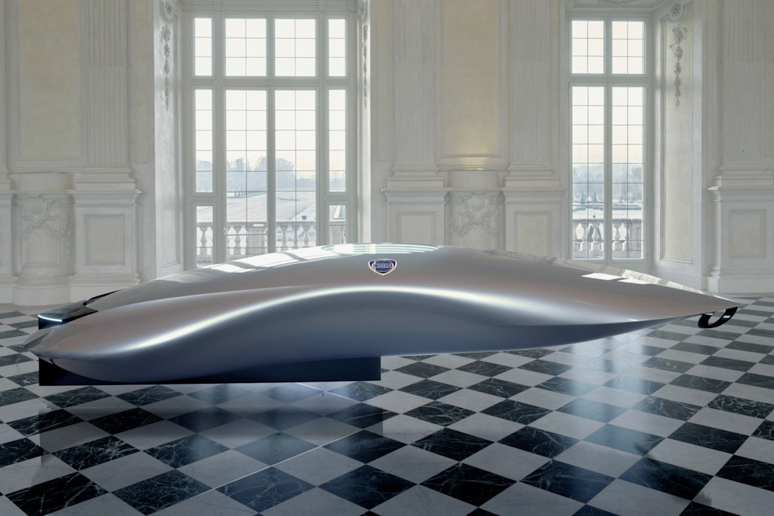 Je kijkt naar de Lancia Pu+Ra Zero. Een studiemodel dat meer op een kunstwerk dan op een automobiel lijkt. We zien er een vis in. En een boot. En een ergonomische computermuis. Is het een nieuwe lijn dakkoffers misschien?